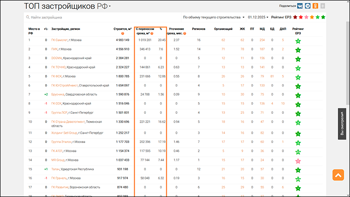 Данные на момент подготовки статьи с сайта застройщиков. Источник: https://erzrf.ru/