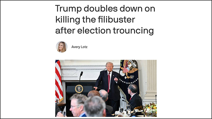 "Филибастером" в США называют набор правил Сената, требующий принятия решений 60 голосами из 100. Им всегда пользовались и республиканцы, когда были в меньшинстве, и поэтому они не хотят отмены этой старой традиции, мешающей Трампу "Сделать Америку великой снова".