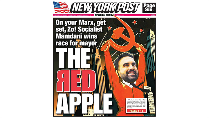 Так отреагировало издание New York Post на избрание Мамдани мэром Нью-Йорка. Скриншот: NYP