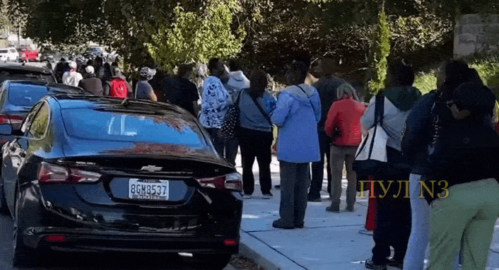 Последствия шатдауна в США: Люди стоят в длинных очередях, чтобы получить бесплатную продовольственную помощь. Видео: ТГ-канал "Пул №3"