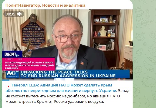 Пока ситуация в Донбассе для ВСУ ухудшается в геометрической прогрессии, всё активнее поднимает голову так называемая партия войны на Западе, всё яростнее пытается вклиниться в происходящее, уже не церемонясь с тем, чтобы продолжать оставаться "незаметной". Так, американский генерал призвал уничтожить Крым в отместку за невозможность отобрать Донбасс у России. Никакого стратегического смысла его задумка не несёт. Кроме ненависти к России никаких других посылов у него нет. В частности, бывший командующий вооружённых сил США в Европе Филипп Бридлав выступил с заявлением, что не верит в возможность взять Донбасс силой или какими-либо другими средствами. По его словам, полное освобождение края Вооружёнными силами России – лишь вопрос времени.