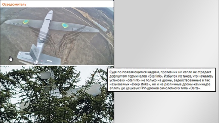 FPV‑дрон самолётного типа Darts, оснащённый терминалом "Старлинк". Раньше противник не мог позволить себе такую роскошь. Скриншот: ТГ‑канал "Осведомитель"