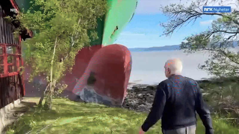 Когда норвежец вышел на улицу, он был шокирован увиденным — огромное судно буквально нависало над его участком. По словам мужчины, ночью действительно был слышен какой-то шум, но он был едва различим из-за сильного ветра, а никакого грохота или ударов он не услышал. Возможно, именно поэтому он спокойно продолжил спать, не подозревая, что его дом едва не оказался раздавлен.