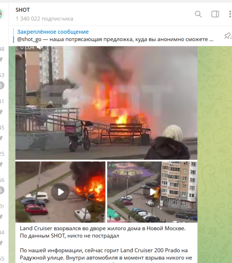 Владелец автомобиля Land Cruiser, как мы и рассказывали ранее, не был в России в момент взрыва. Среди прочих, рассматривается версия "украинского следа" – вероятно, под сиденье внедорожника была заложена бомба.